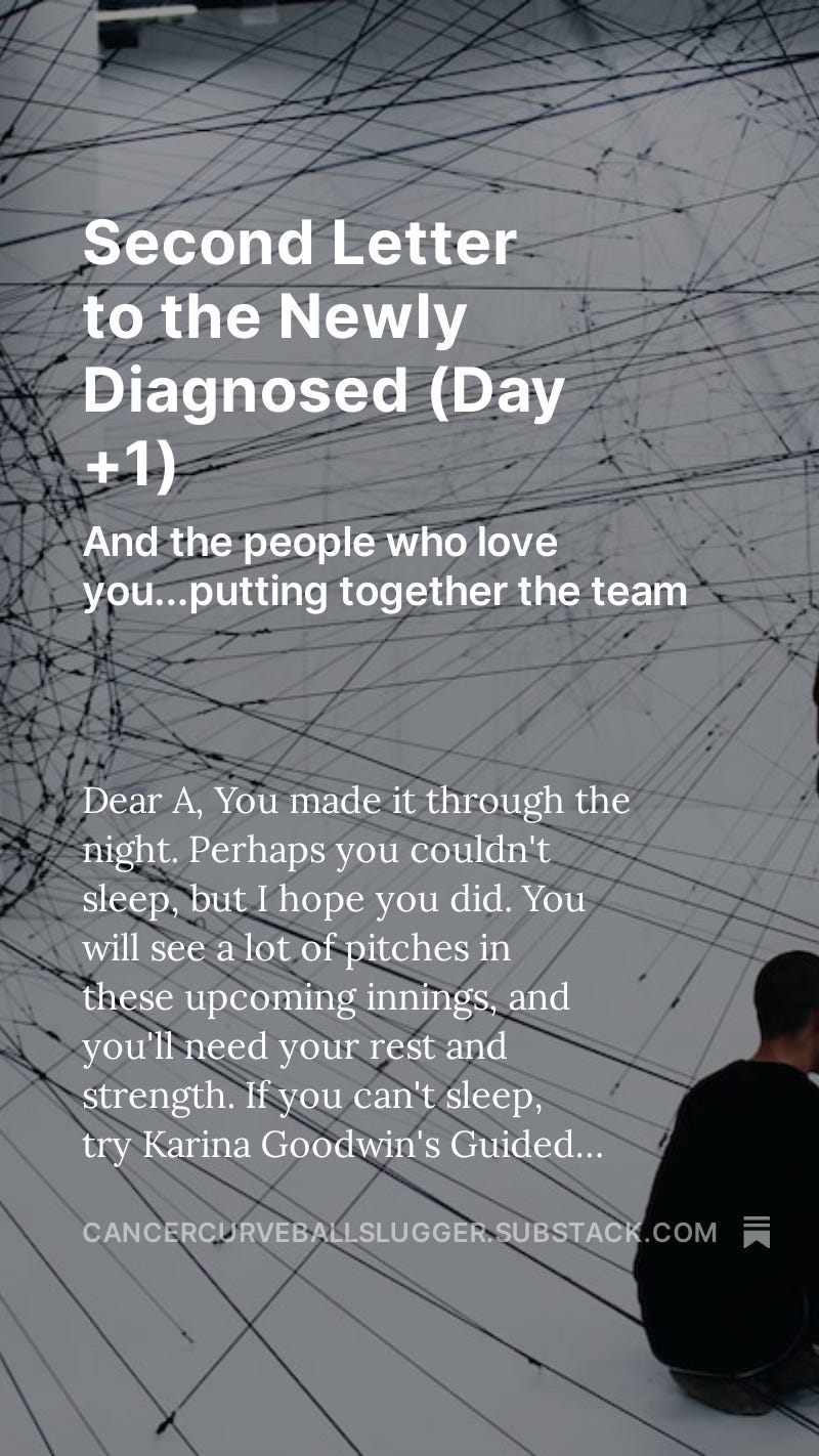 Dear Newly Diagnosed Cancer Patient (I’ll call you A),