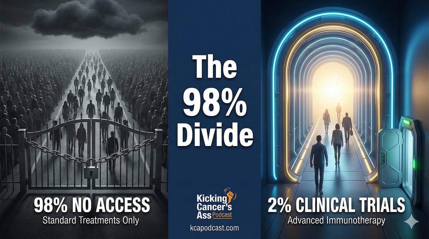 But 98% of cancer patients never access clinical trials where the most advanced immunotherapy treatments are available. Most aren’t even offered the option.