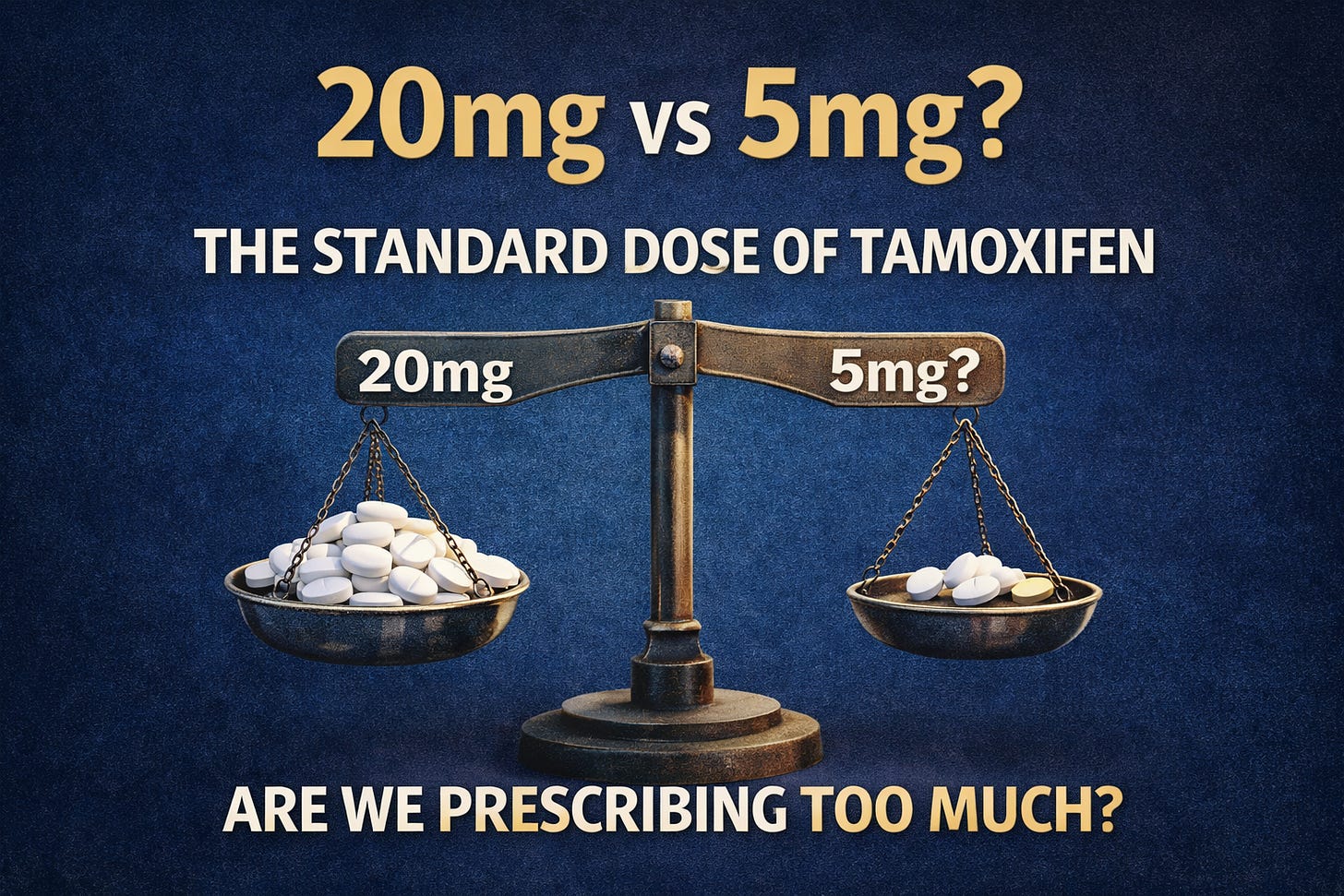 The standard dose of tamoxifen has been 20mg daily for five years since the 1980s. That dose was established because it worked in trials and it was safe, not because anyone asked whether a lower dose might work just as well with a fraction of the consequences. For decades, no one seriously ran that trial.