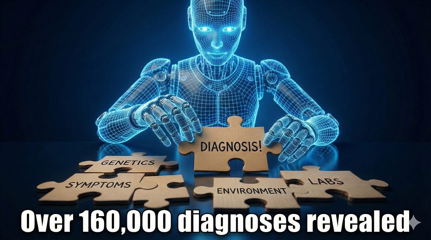 Then she ended up with a geneticist using an AI diagnostic platform. The answer came quickly. And the solution? Change her diet. Reduce protein, increase enzymes. Eighteen months later, Maria was thriving.