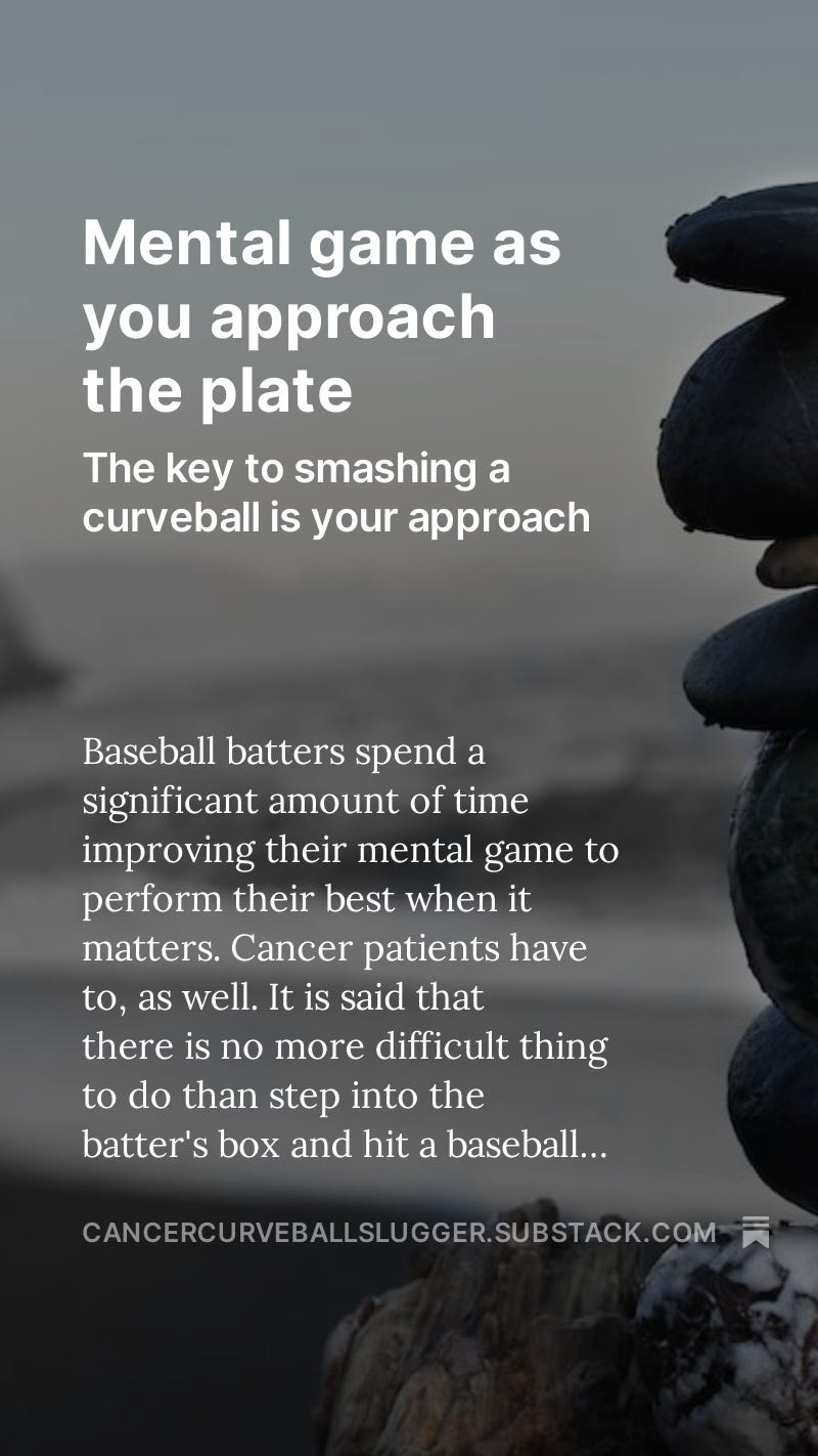 I was hitting the pitches pretty smoothly against the chemotherapy/immunotherapy pitches. I am fortunate that my side effects were managed and minimal. For my first 2-3 treatments, I worried a lot that something in my labs would cause a delay. I saw my oncologist for the first treatment, then every three weeks. I didn't realize how anxious I was before my first post-chemo meeting with her - but I was uncomfortably constipated. When I saw her, I asked what the exclamation points in some of my lab tests meant for my treatment.
